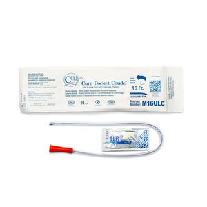 Cure Medical Pocket Catheter, Single, Male, 16" Coude Tip with Lubricant, 16 FR